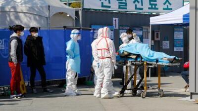 Pacientes contagiados con covid-19 eran transportados en el centro médico Daegu, Corea del Sur, el 2 de marzo de 2020. En esta nación, 163 pacientes que ya se habían recuperado del covid-19, nuevamente fueron puestos enislamiento, luego de volver a dar positivo.